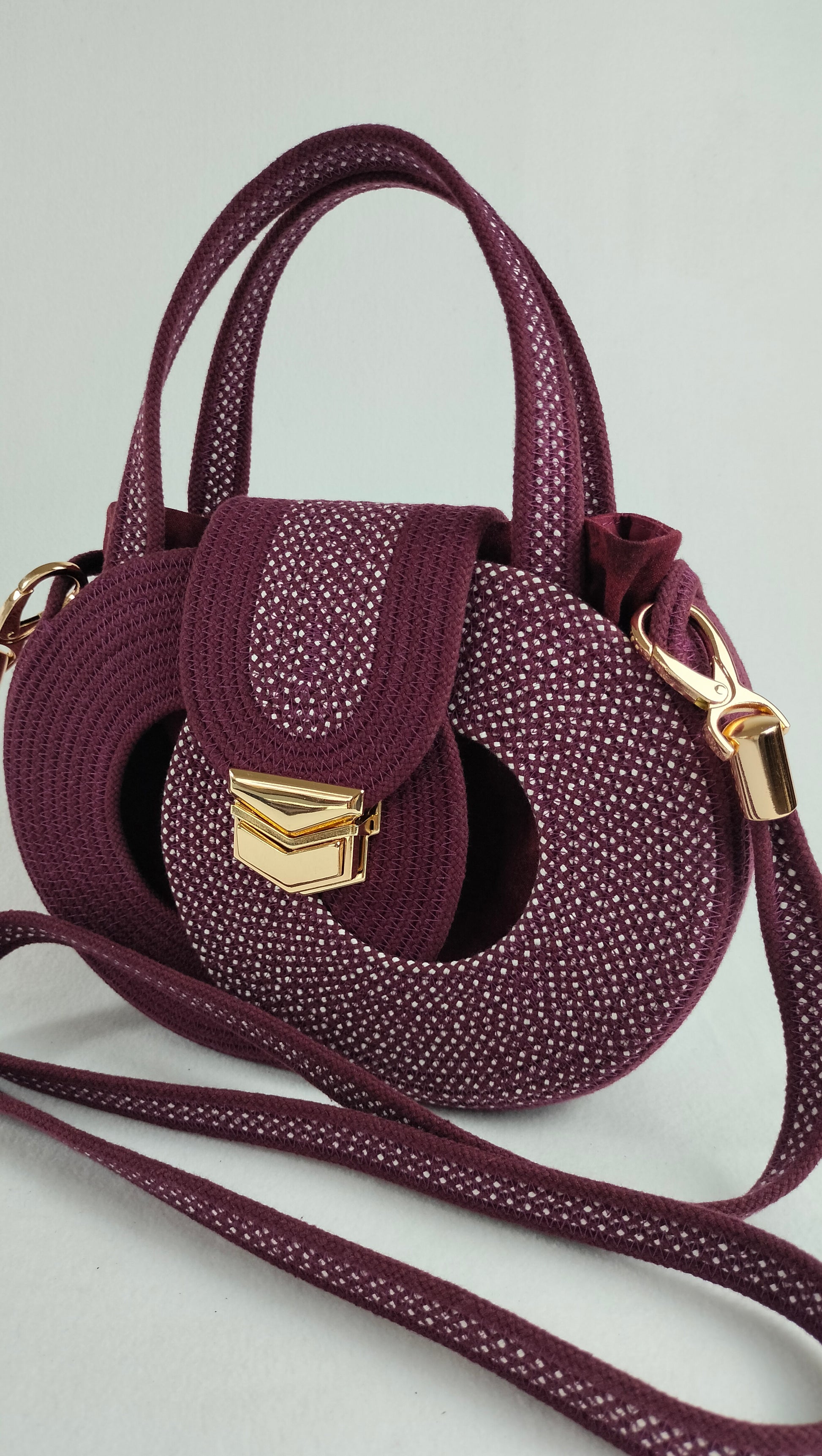 The "Plum" bag from the Infinity collection combines elegance and practicality. Its deep plum shade is complemented by a melange accent of plum and white cord, creating a stylish and distinctive design.